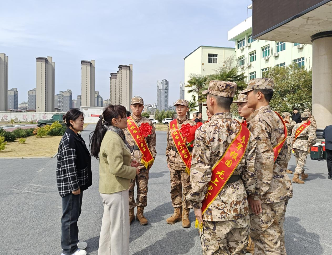 活动伊始,老师们对即将踏入军旅生涯的员工表达了最诚挚的祝贺,言辞中满是对他们的殷切期望,强调在部队中务必严格自律,全身心投入艰苦训练,在部队大熔炉里不断锤炼,实现人生价值的飞跃。公司精心准备了具有纪念意义的礼物,这些礼物承载着对入伍员工的深切关怀与美好祝愿。老师们亲自将礼物递到员工手中,每一次交接都伴随着温暖的叮嘱与鼓励,传递着师生间深厚的情谊。随后,老师们细致地为员工整理象征光荣使命的绶带,那认真专注的神情,仿佛在为即将出征的战士整理戎装,绶带随风轻扬,象征着员工们即将开启荣耀的征程。