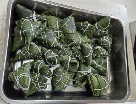 活动现场,清新的粽叶香气弥漫,晶莹糯米与饱满蜜枣在桌案上构成色彩斑斓的端午图景。在老师的悉心指导下,同学们围坐成圈,专注学习传统粽子的包制技艺。尽管初次尝试时手法略显生涩,但在欢声笑语中,一个个棱角分明的 “小脚粽” 逐渐成型。