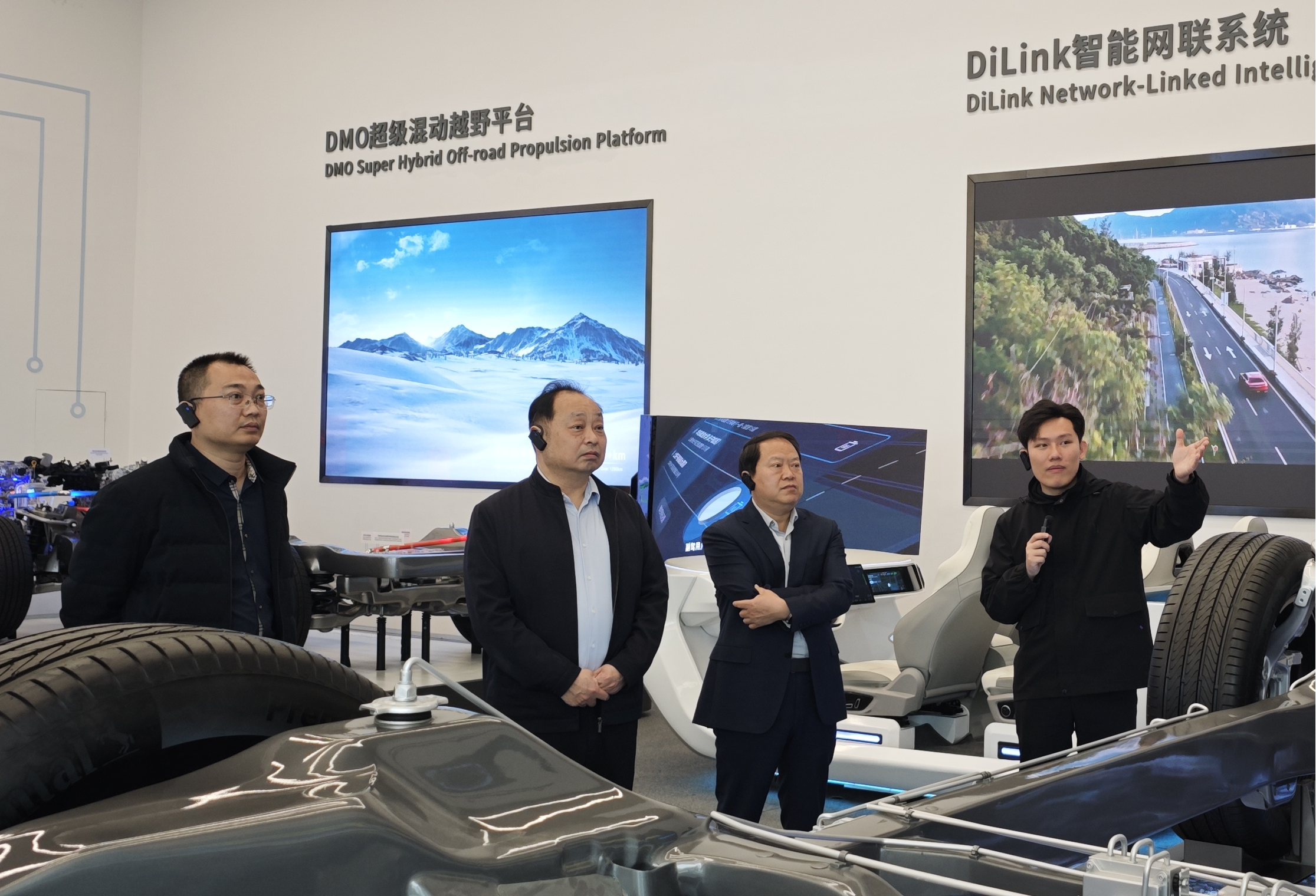 会后,在企业相关负责人的陪同下,薄新党一行参观了比亚迪产品展厅,详细了解了比亚迪在新能源汽车、储能系统、轨道交通等领域的研发成果和生产工艺。